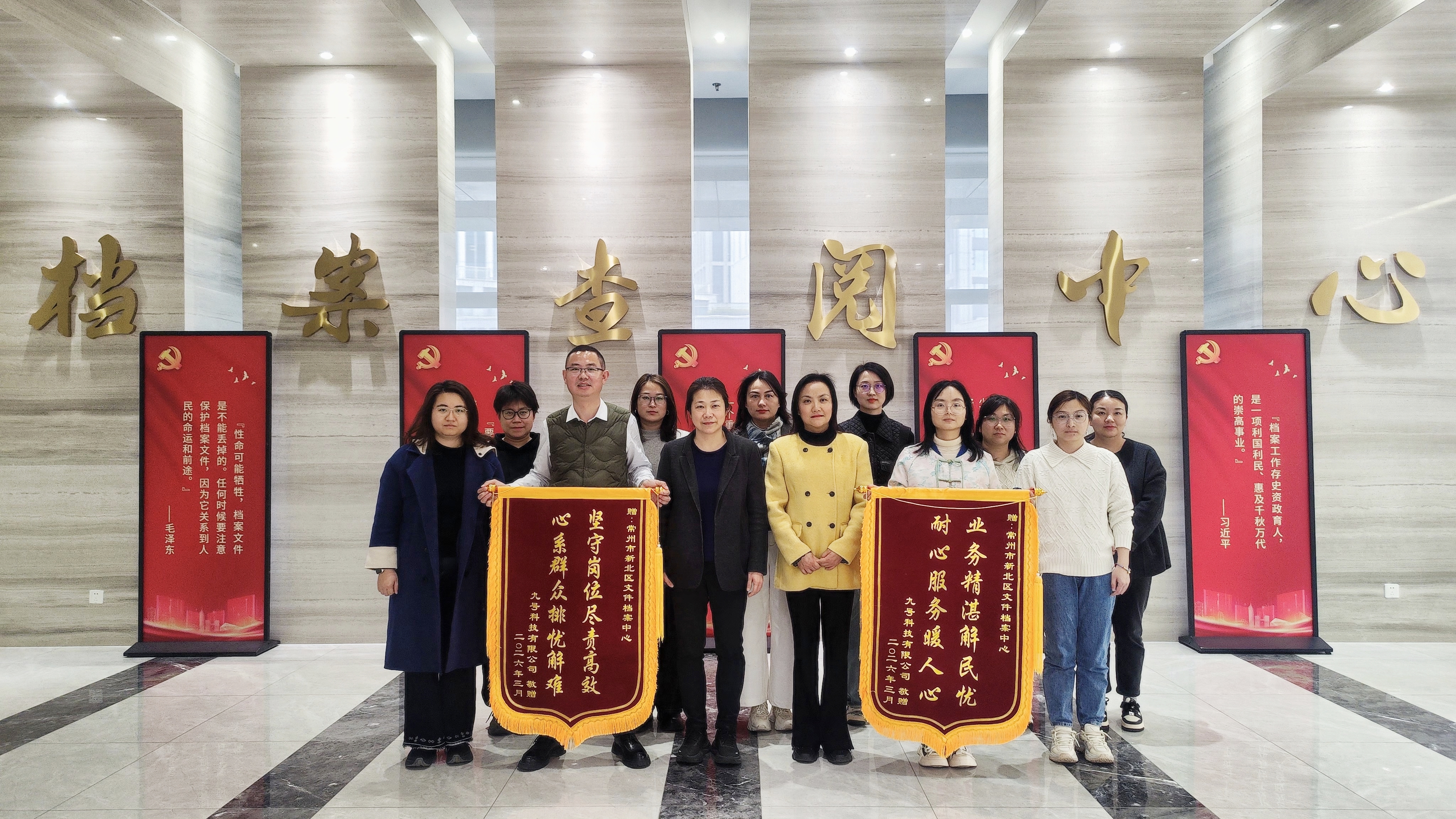 3月11日,九号科技有限公司相关负责人专程来到新北区档案馆,将两面沉甸甸的锦旗交到工作人员手中。锦旗上,“坚守岗位尽责高效,心系群众排忧解难”与“业务精湛解民忧,耐心服务暖人心”的烫金大字熠熠生辉,字里行间饱含着企业对档案馆专业、高效、暖心服务的深深感激。 这感人的一幕,源于过去一年新北区档案馆与九号科技的紧密协作。作为全区领先的智能短交通与服务机器人标志性企业,九号科技新能源智能移动出行产品项目、九号科技智能电动车辆项目双双被列入市级重点项目。项目早日建成投产,不仅承载着企业的发展期盼,更对推动区域经济高质量发展具有重要意义。然而,在推进过程中,企业面临一道紧迫考题:为尽快完成竣工备案、产权登记等关键手续,项目档案的验收审核与移交工作时间紧、任务重,稍有延迟就可能影响后续投产进度。 急企业之所急,解项目之所难。为保障项目推进,档案馆在了解企业需求后,及时安排业务骨干提供指导,优化工作流程、加班加点,按期完成建设项目档案审核、移交等相关工作,为企业项目手续办理和投产落地提供了有力支持。 两面锦旗,既是信任,更是责任。新北区档案馆将持续践行“为民管档、为企服务”理念,不断提升服务质效,为全区高质量发展提供更坚实的档案服务保障。 作者:新北区档案馆 丁佳丽 |